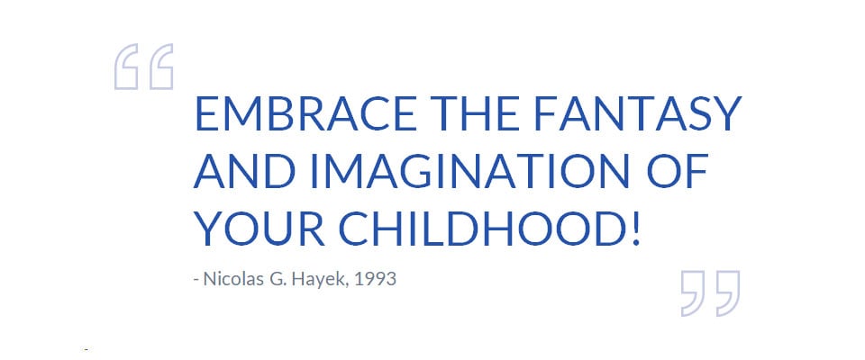 At this point, Nicolas G. Hayek, at the time Chief Executive Officer of Hayek Engineering, received an assignment to develop a strategy for the future of both companies. In 1983, the soon to be renowned Hayek Study recommended a number of measures designed to enable the survival and ultimate recovery of the companies. Critical steps included the merger of ASUAG and SSIH into SMH and the launching of a low-cost, high-tech, artistic and emotional «second watch» – the Swatch. The subsequent implementation of the measures recommended by the Hayek Study, together with the take-over of the majority of shares by the Hayek Pool and the nomination of Nicolas G. Hayek as CEO, successfully created new opportunities and established a new culture. Within five years, the SMH Group was to become the most valuable watchmaker in the world.