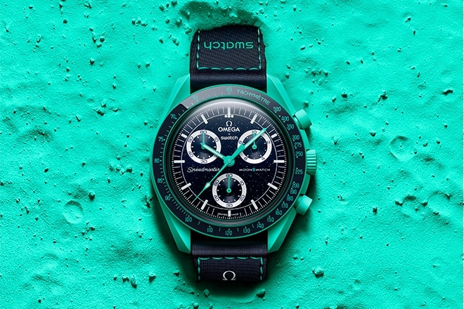 LA COLLECTION BIOCERAMIC MOONSWATCH SUBLIME LA TERRE VUE DE L’ESPACE.