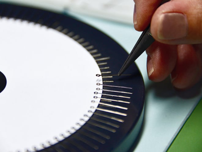 Grazie alla stretto partenariato con i suoi clienti, Universo ha potuto sviluppare e creare soluzioni innovative concernenti sia il design che tutta la complessità tecnica dei suoi prodotti. Citiamo per esempio la realizzazione per elettrosagomatura ad alta definizione di lancette la cui geometria escludeva qualsiasi possibilità di découpage tramite il sistema di stampaggio tradizionale. Inoltre, poiché l’adeguamento della capacità di produzione al crescente aumento dei volumi non concerne solo i mezzi, Universo si è adoperata in modo particolare nell’impegnare risorse di qualità e nella formazione.